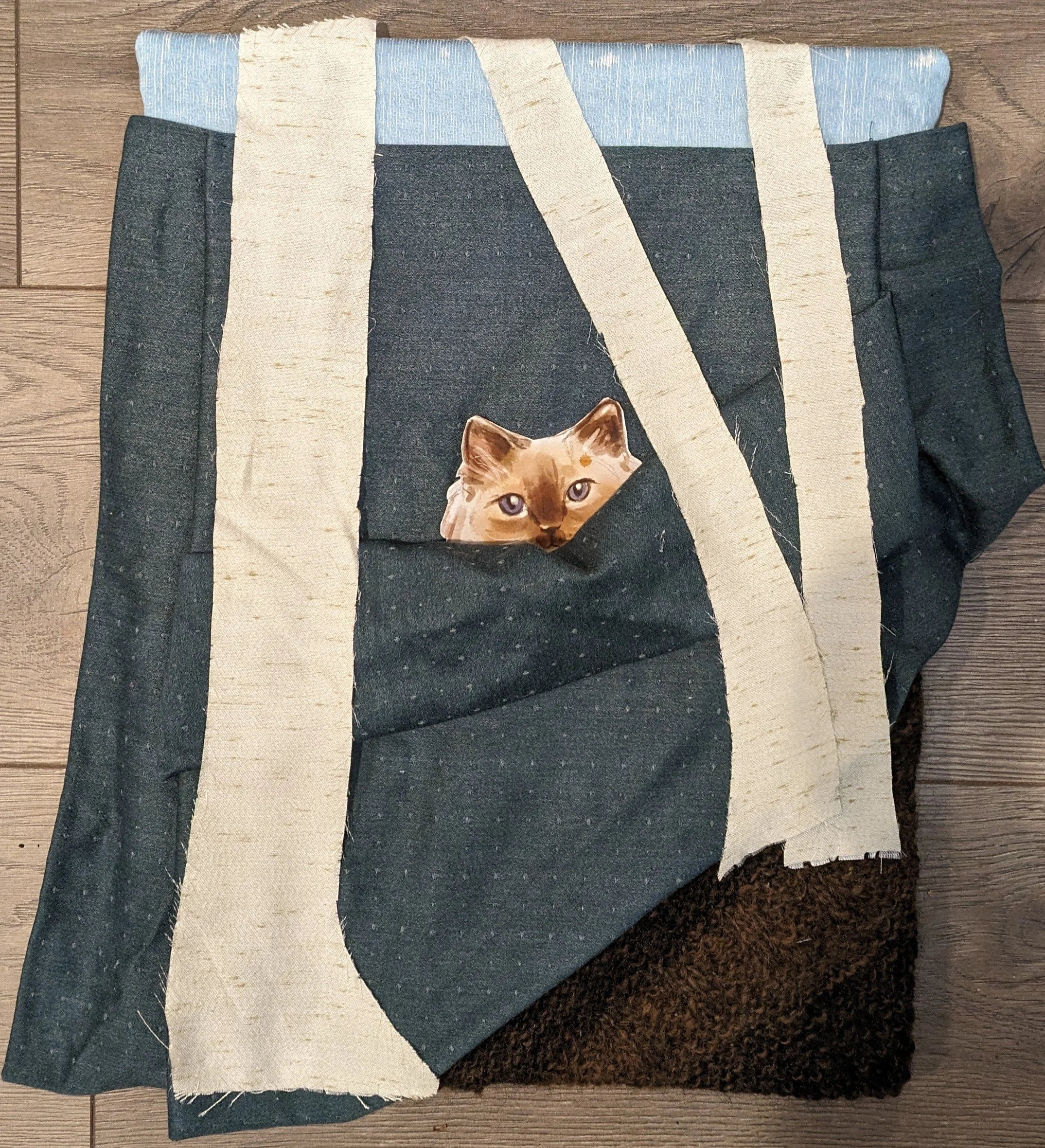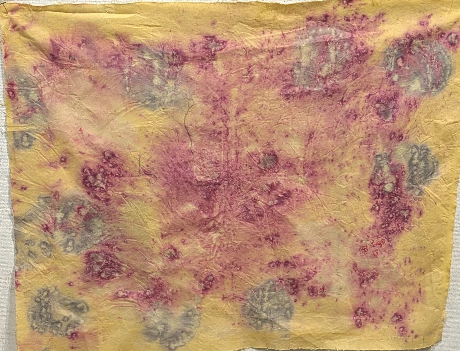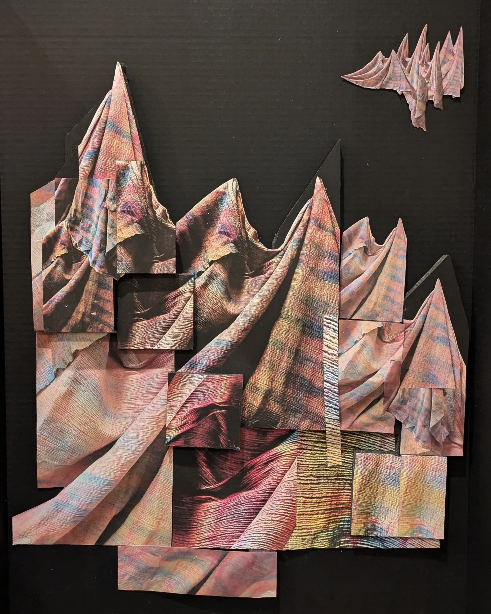Collage on canvas, fabric, cardstock, 16” x 20”